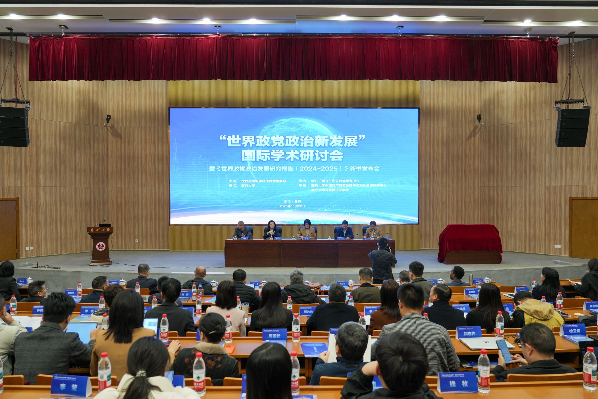 11月22日,由世界政党智库合作联盟理事会、嘉兴大学主办,浙江(嘉兴)中外政党研究中心、嘉兴大学中国共产党革命精神与文化资源研究中心、嘉兴大学马克思主义学院承办的 “世界政党政治新发展”国际学术会议暨《世界政党政治发展研究报告(2024-2025)》新书发布会在嘉兴大学举行。嘉兴大学党委书记沈希,中共中央对外联络部研究室副主任赵静,嘉兴大学党委副书记、马克思主义学院党委第一书记陈立力,浙江(嘉兴)中外政党研究中心主任、首席专家周淑真出席会议。嘉兴大学党委原副书记、马克思主义学院院长吕延勤主持开幕式。